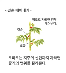 - 잎과 줄기 사이에서 곁가지가 발생하는데 되도록 빨리 제거하여 주지만 키운다.