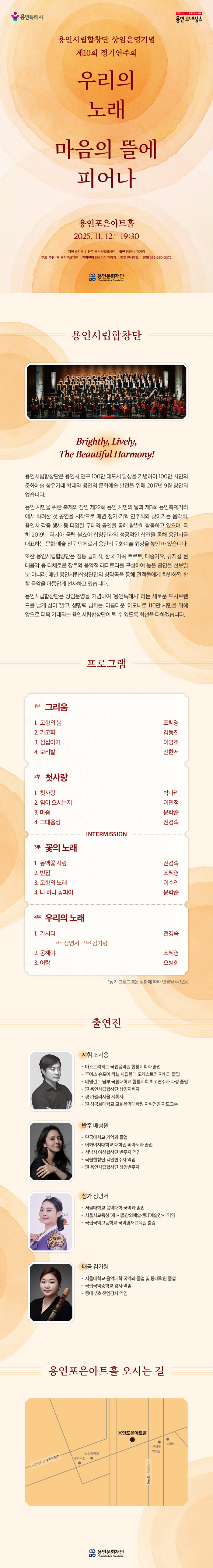용인시립합창단 상임운영기념 제10회 정기연주회 <우리의 노래, 마음의 뜰에 피어나>