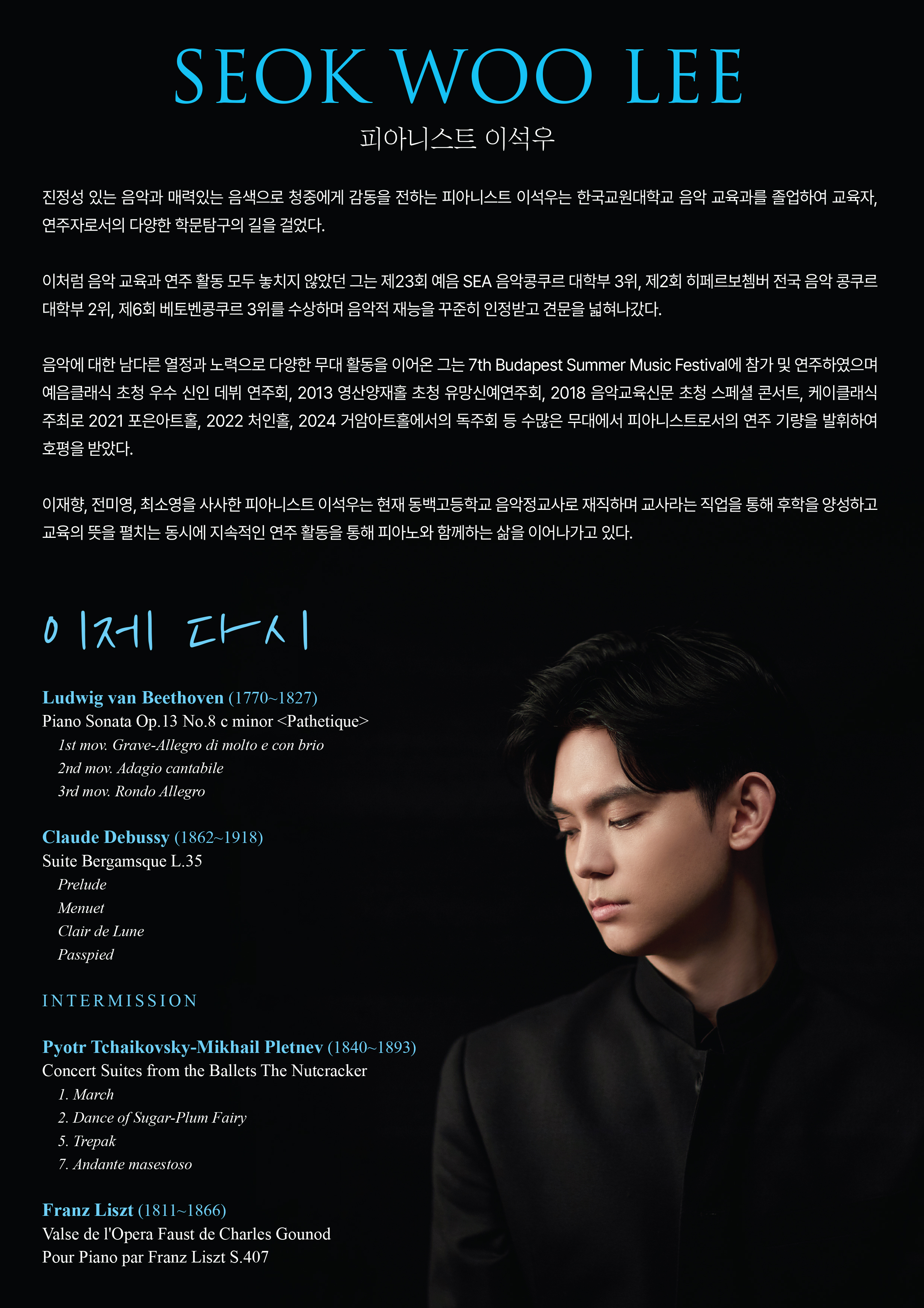 본 공연은 대관공연으로 자세한 사항은 케이클래식스테이지 02-523-7789 로 문의부탁드립니다