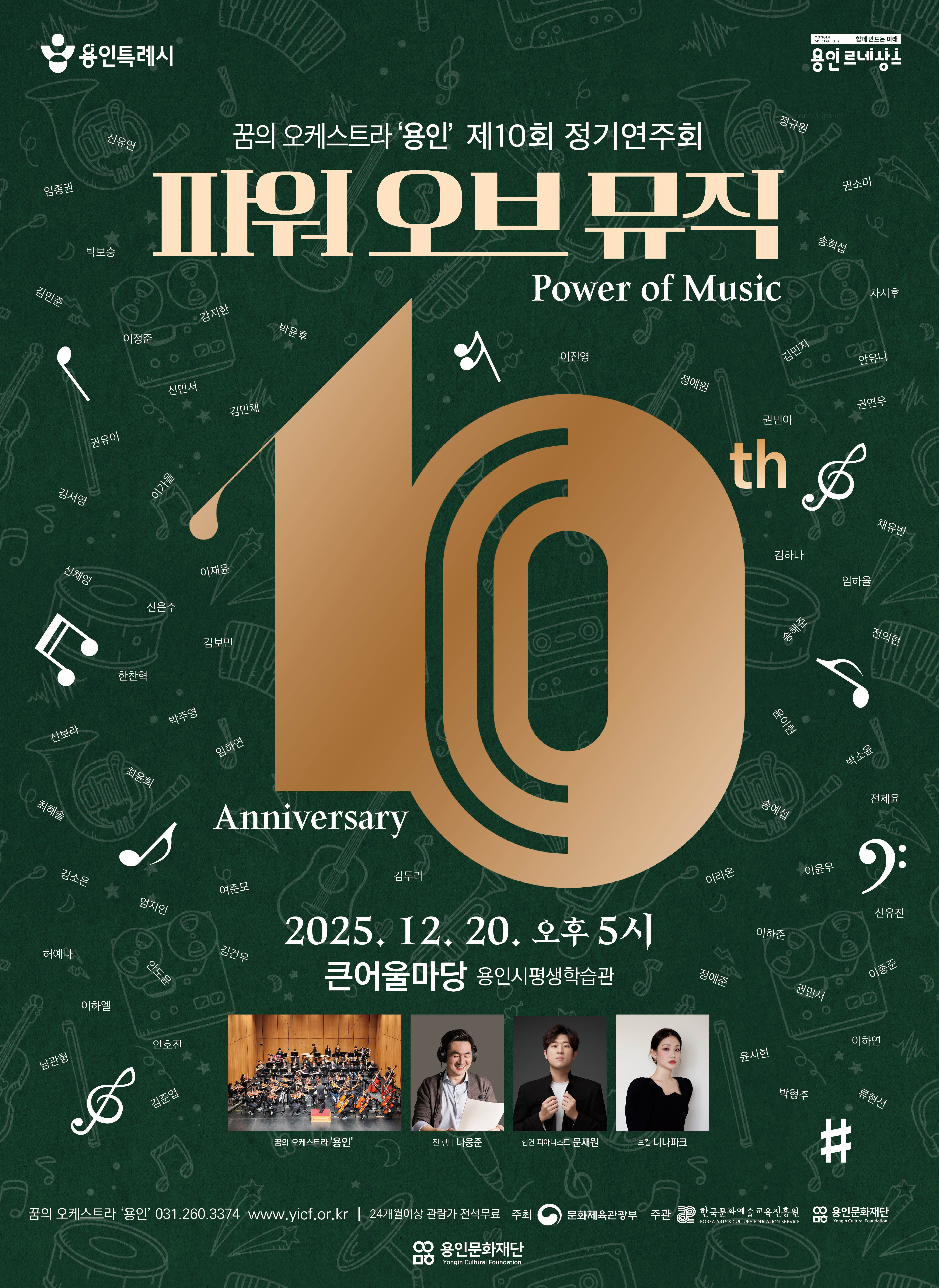 1) 문의 : 꿈의 오케스트라 '용인' 031.260.3374 2) 본 공연은 선착순 무료 입장이나 좌석 선점을 위해 댓글 신청 바랍니다. 3) 댓글 신청 기간 : 2025.11.21. 14:00 ~ 12.05. 14:00 4) 위 신청 기간 내에만 본 페이지 하단에 댓글 게시판이 오픈됩니다. 5) 오기재시 삭제 후 재신청 바랍니다.